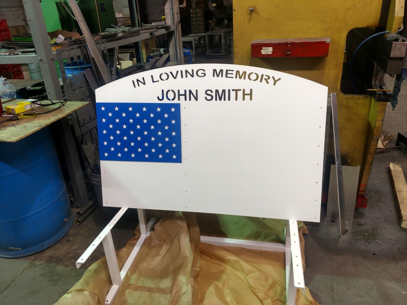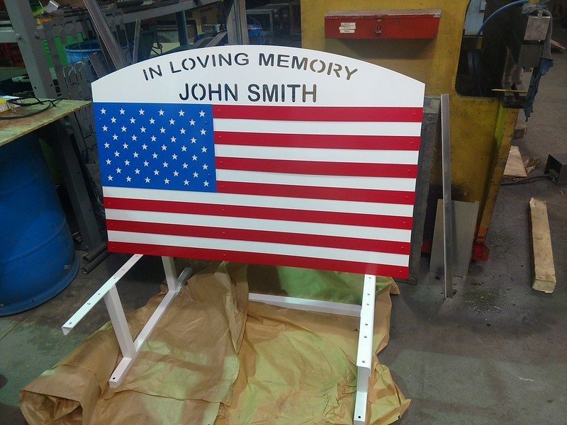 Project: Part of our process to create a metal sign with an American flag design.