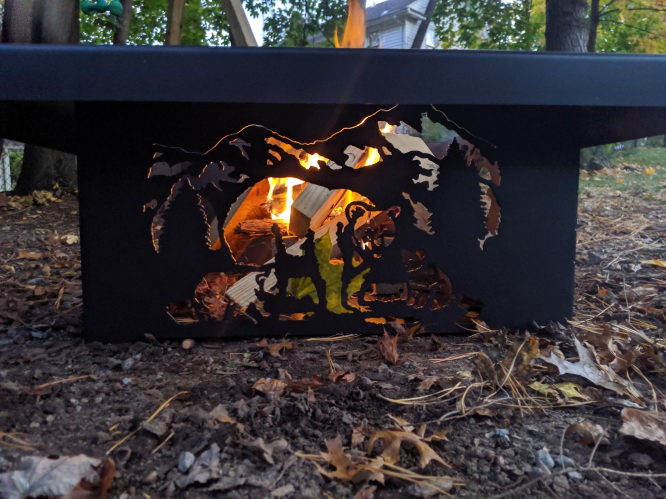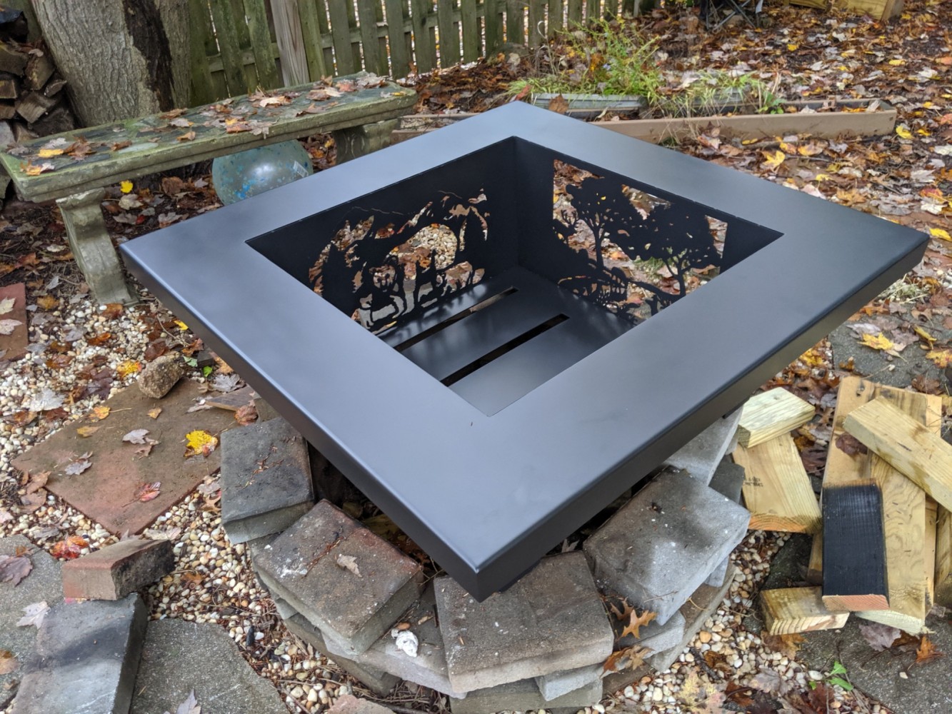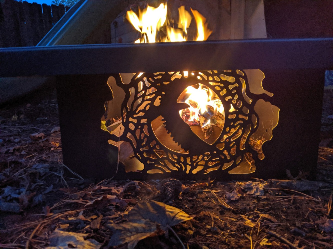 Custom imagine metals fire pit in use