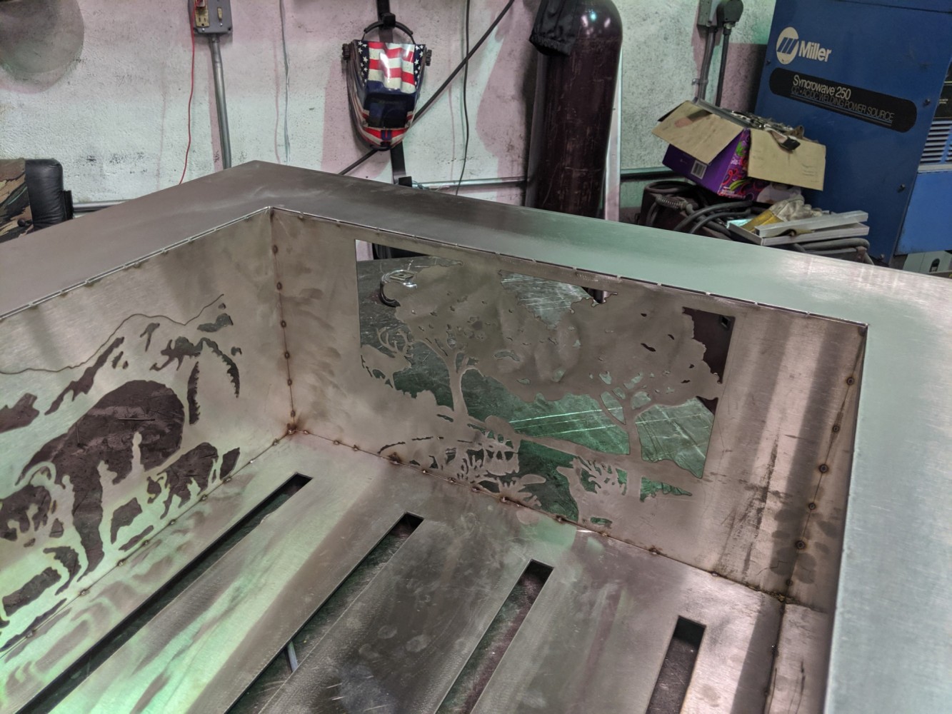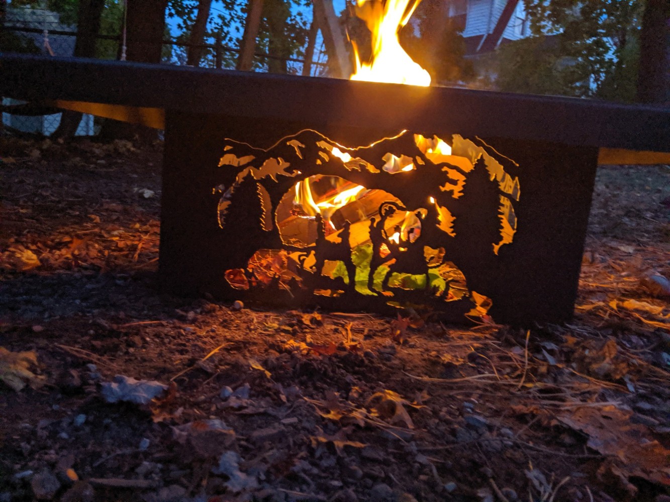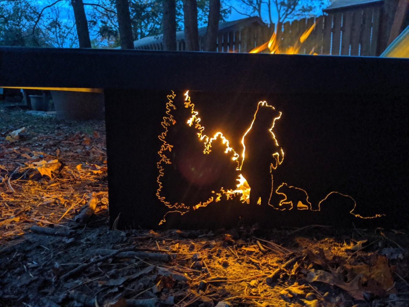 Custom imagine metals fire pit in use